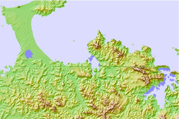 Use this relief map to navigate to tide stations, surf breaks and cities that are in the area of Mangonui, New Zealand.