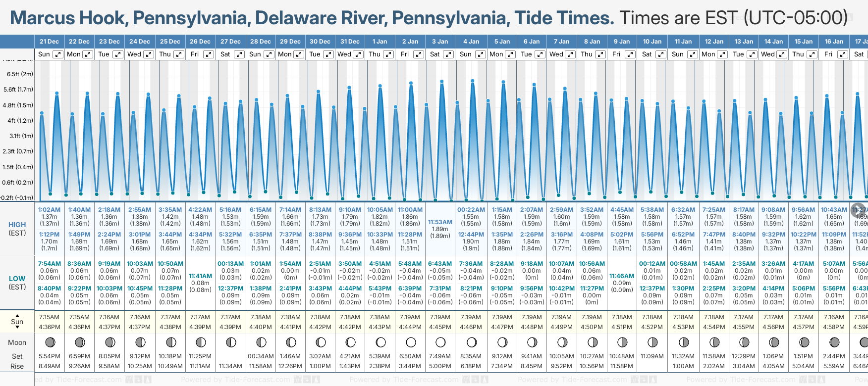 Marcus Hook River tide times for December and January