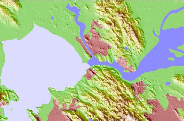 Use this relief map to navigate to tide stations, surf breaks and cities that are in the area of Mare Island, Naval Shipyard, California.