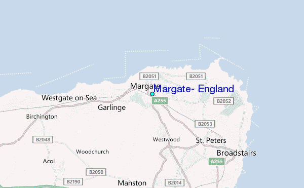 Use this relief map to navigate to tide stations, surf breaks and cities that are in the area of Margate, England.