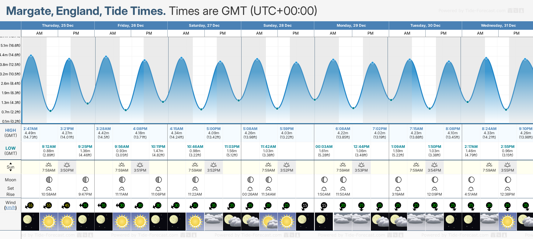 NOTE: Use of this site for Margate, England tide times is subject to our terms.