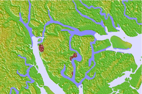 Use this relief map to navigate to tide stations, surf breaks and cities that are in the area of Marine Corps Air Station, Brickyard Creek, Beaufort River, South Carolina.