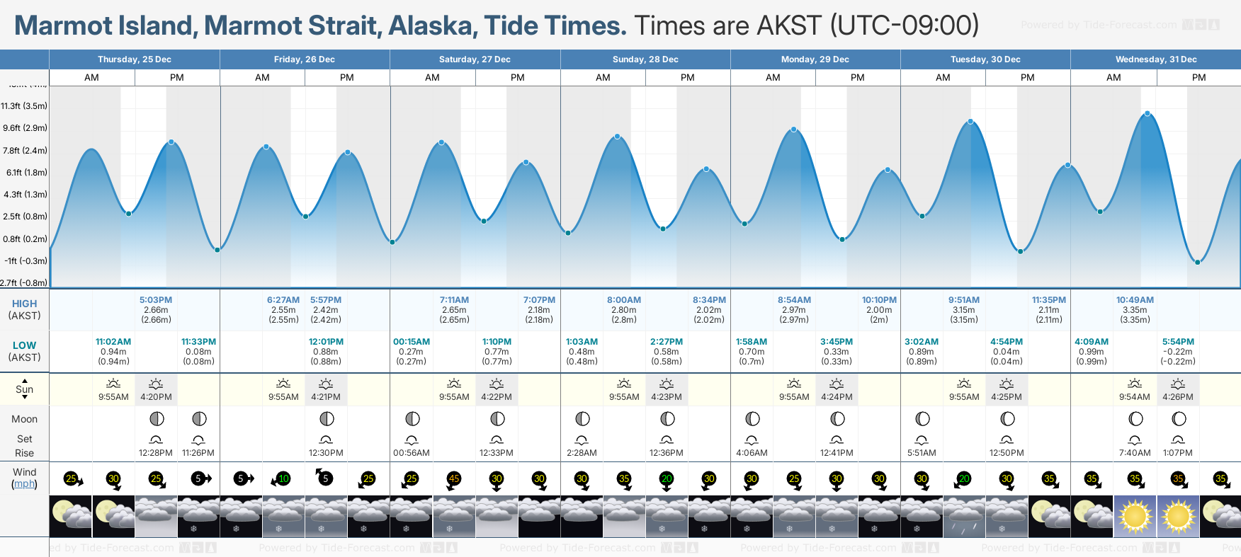 Tide Times for Marmot Island, Marmot Strait (tomorrow): Thursday 25 December 2025