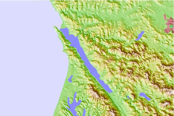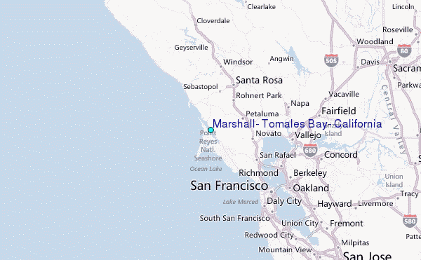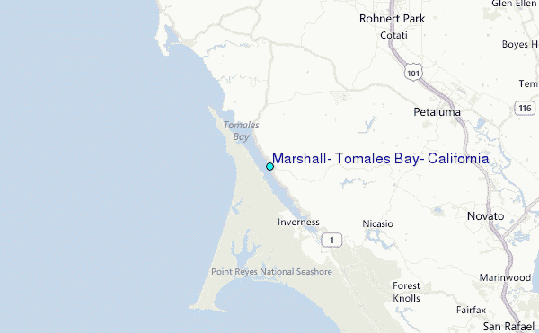 Use this relief map to navigate to tide stations, surf breaks and cities that are in the area of Marshall, Tomales Bay, California.