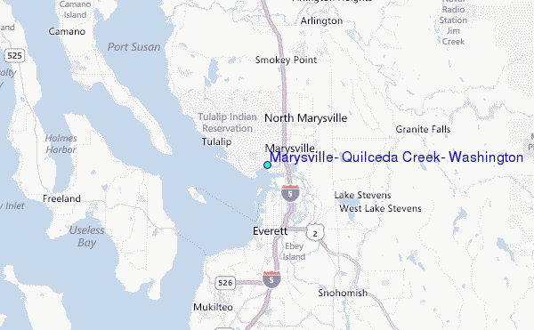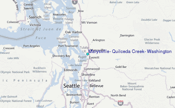 Use this relief map to navigate to tide stations, surf breaks and cities that are in the area of Marysville, Quilceda Creek, Washington.