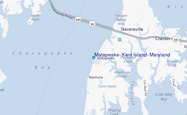 Use this relief map to navigate to tide stations, surf breaks and cities that are in the area of Matapeake, Kent Island, Maryland.