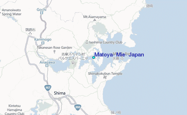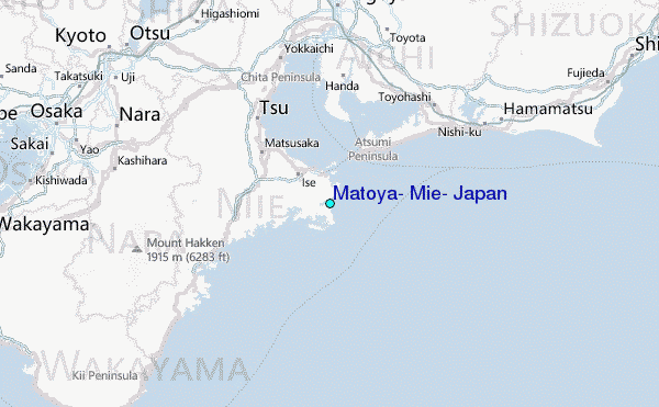 Use this relief map to navigate to tide stations, surf breaks and cities that are in the area of Matoya, Mie, Japan.