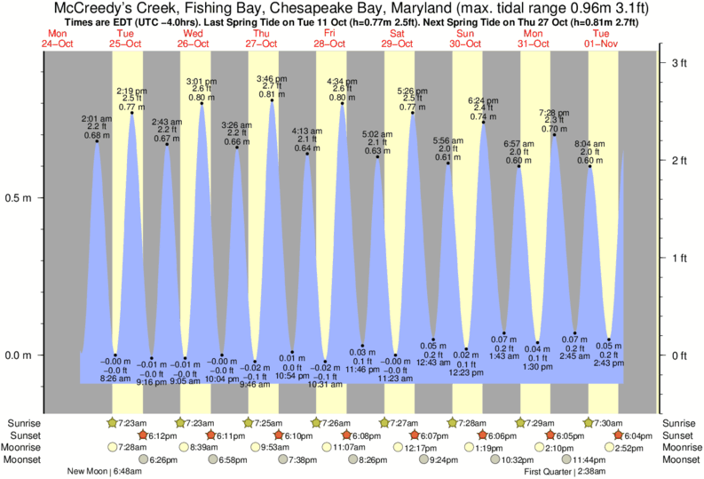 Tide chart for McCreedy's Creek, Fishing Bay, Chesapeake BayShowing low and high tide times for the next 30 days at McCreedy's Creek, Fishing Bay, Chesapeake Bay. Tide Times are EST (UTC -5.0hrs).