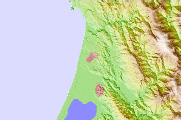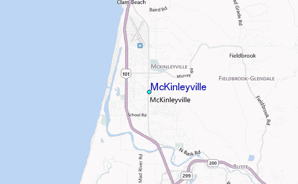 Use this relief map to navigate to tide stations, surf breaks and cities that are in the area of McKinleyville.
