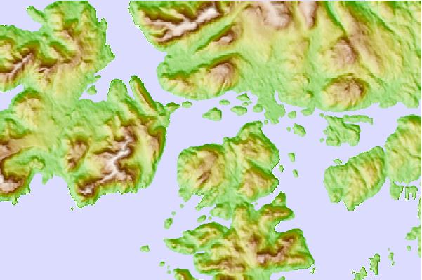 Use this relief map to navigate to tide stations, surf breaks and cities that are in the area of Meares Island, south side, Meares Passage, Alaska.