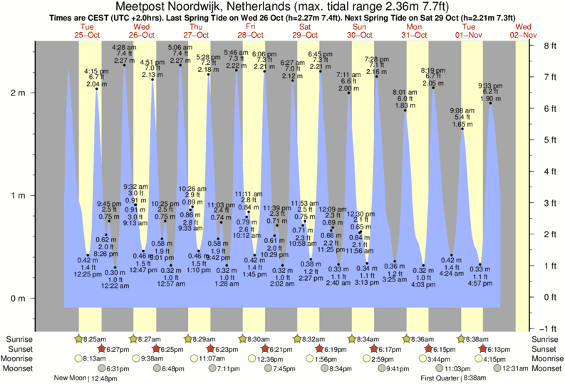 Tide chart for Meetpost NoordwijkShowing low and high tide times for the next 30 days at Meetpost Noordwijk. Tide Times are CET (UTC +1.0hrs).