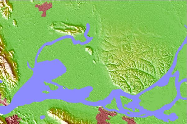 Use this relief map to navigate to tide stations, surf breaks and cities that are in the area of Meins Landing, Montezuma Slough, Suisun Bay, California.