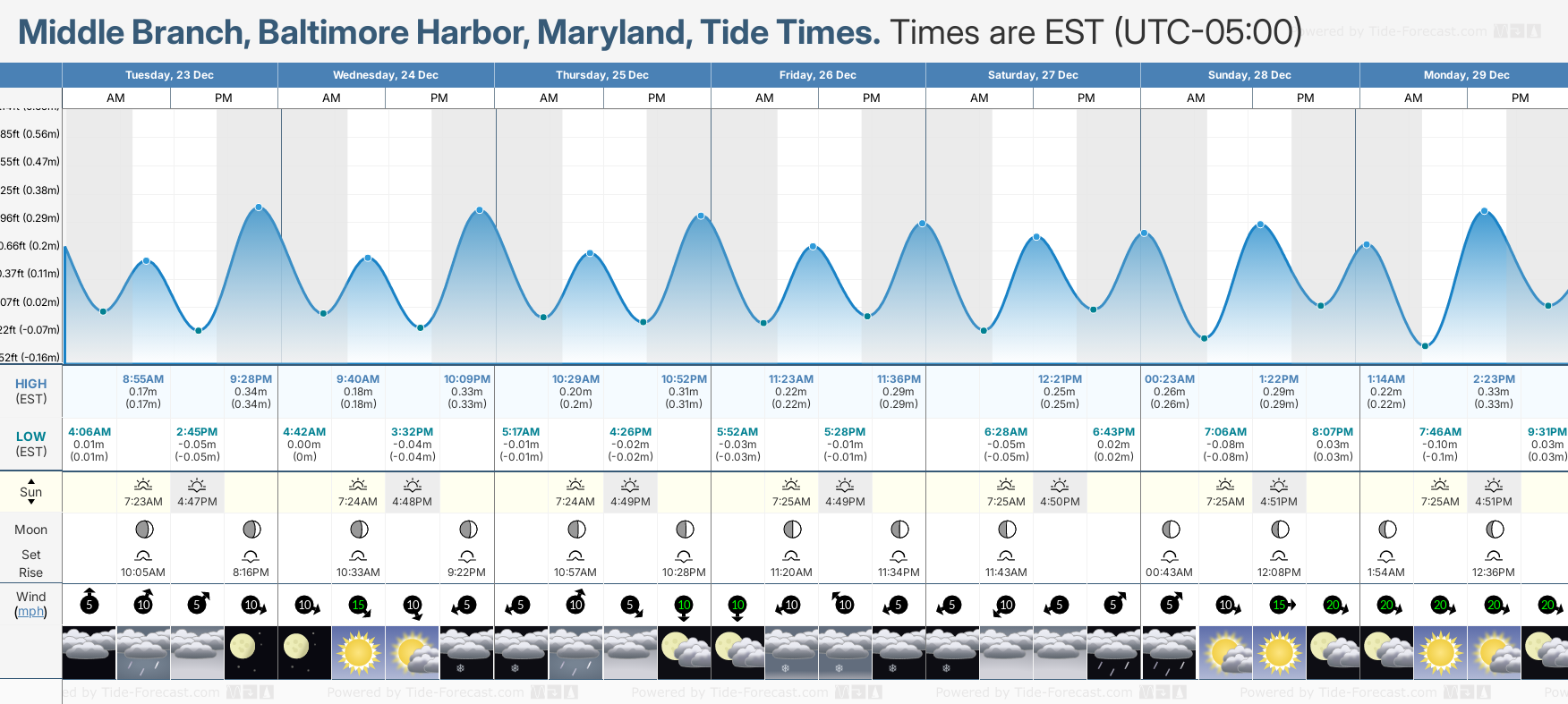 Tide Times for Middle Branch, Baltimore Harbor (tomorrow): Wednesday 24 December 2025