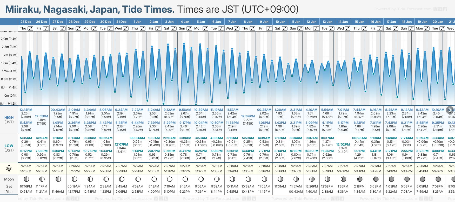 Miiraku tide times for December and January