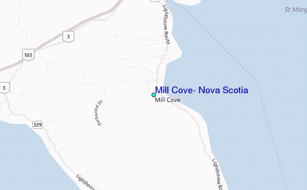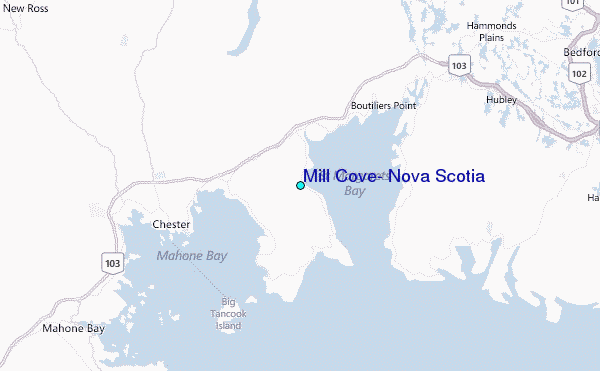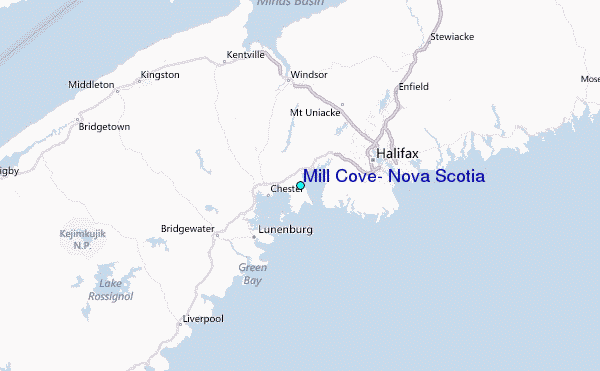 Use this relief map to navigate to tide stations, surf breaks and cities that are in the area of Mill Cove, Nova Scotia.