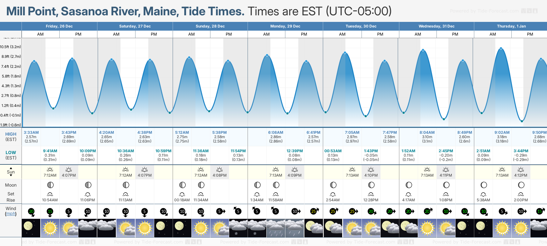 NOTE: Use of this site for Mill Point, Sasanoa River, Maine tide times is subject to our terms.
