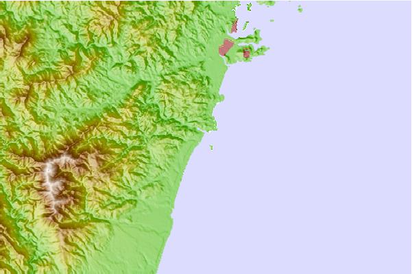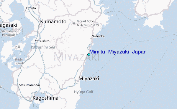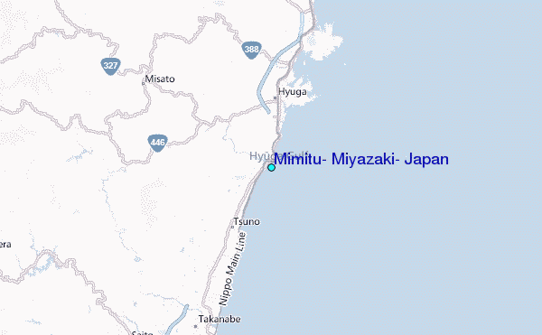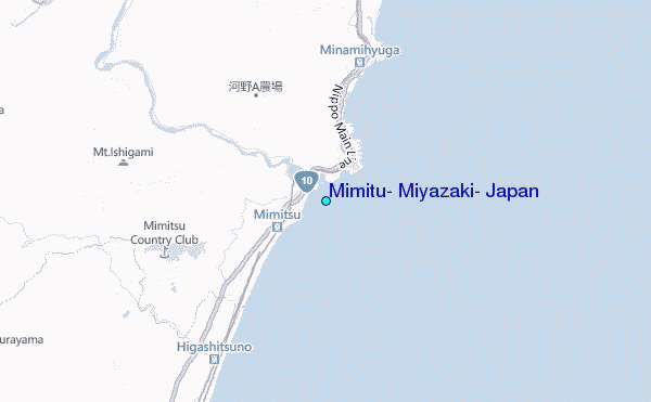 Use this relief map to navigate to tide stations, surf breaks and cities that are in the area of Mimitu, Miyazaki, Japan.