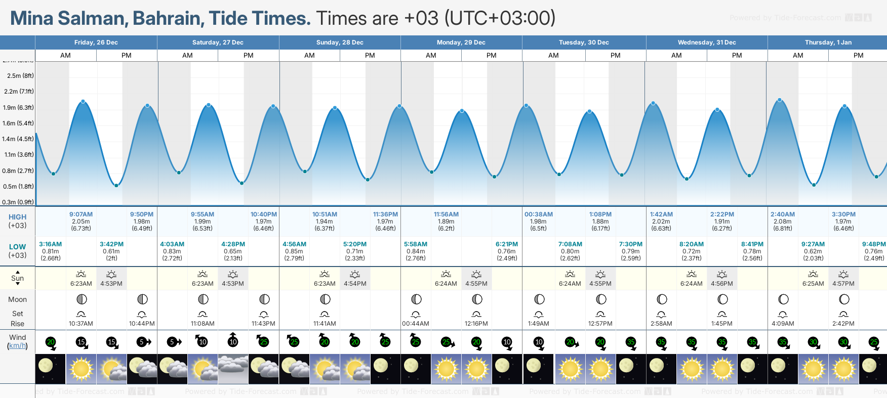 Tide Times for Mina Salman, Bahrain (tomorrow): Friday 26 December 2025