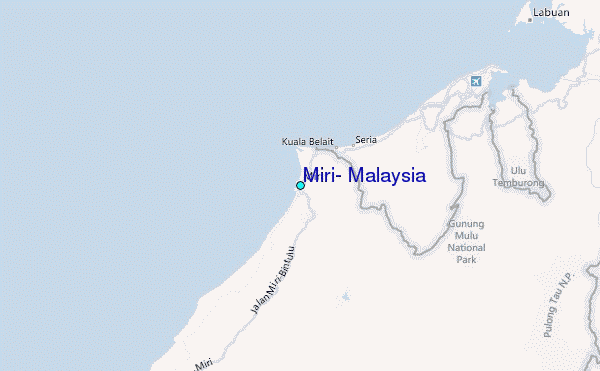 Use this relief map to navigate to tide stations, surf breaks and cities that are in the area of Miri, Malaysia.