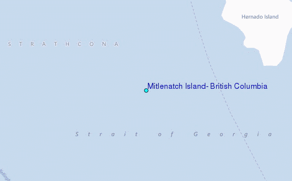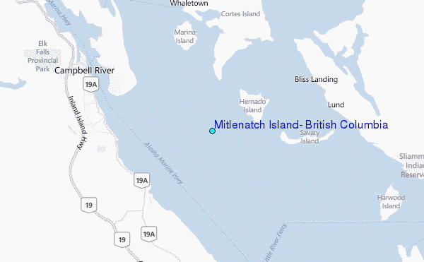 Use this relief map to navigate to tide stations, surf breaks and cities that are in the area of Mitlenatch Island, British Columbia.