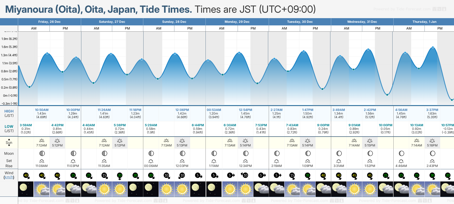 Tide Times for Miyanoura (Oita): Thursday 01 January 2026
