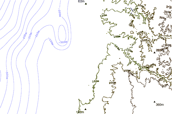 Use this relief map to navigate to tide stations, surf breaks and cities that are in the area of Mocamedes, Angola.