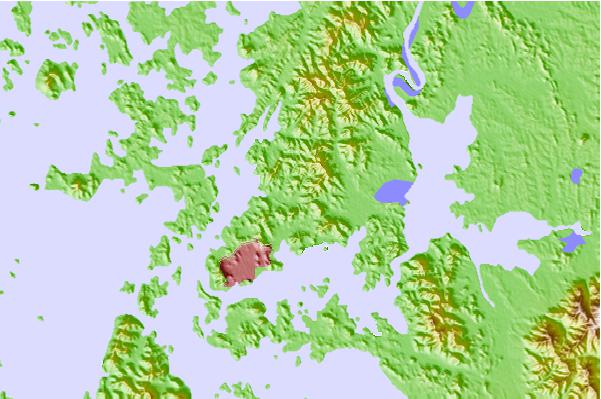 Use this relief map to navigate to tide stations, surf breaks and cities that are in the area of Mogpo.