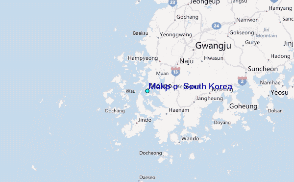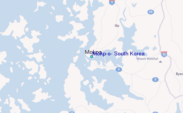 Use this relief map to navigate to tide stations, surf breaks and cities that are in the area of Mokp'o, South Korea.