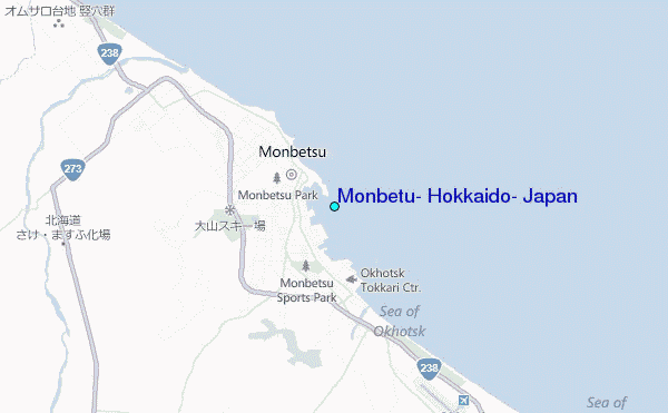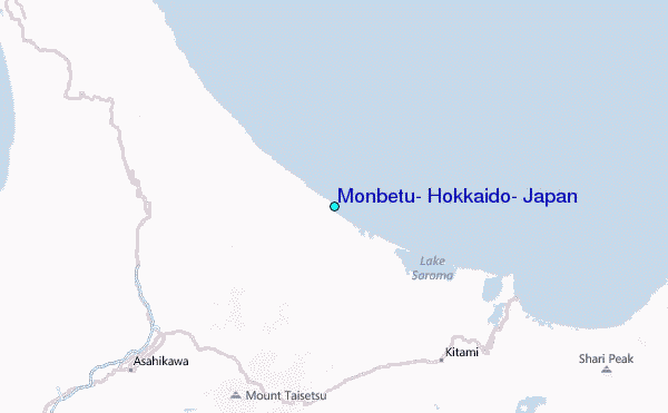 Use this relief map to navigate to tide stations, surf breaks and cities that are in the area of Monbetu, Hokkaido, Japan.