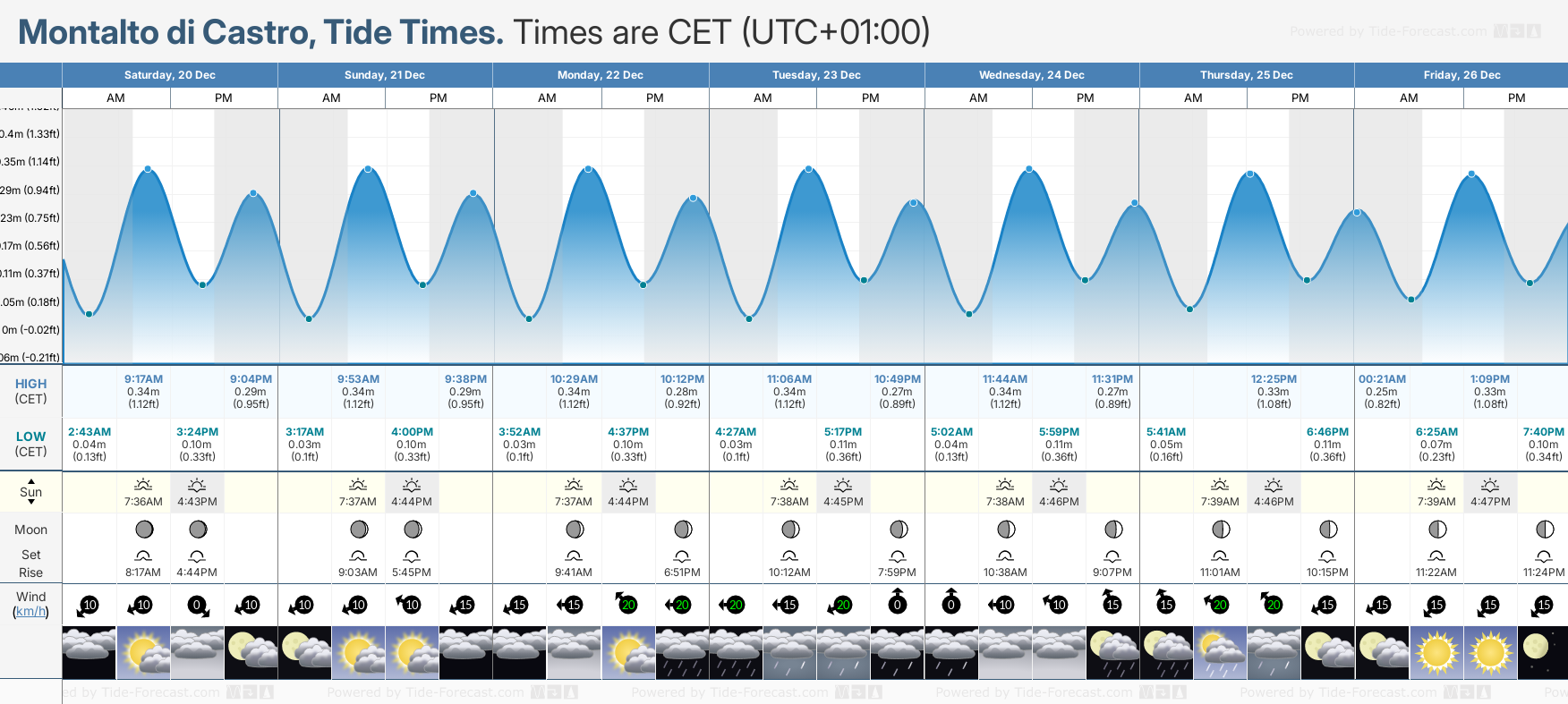 Today's tide times for Montalto di Castro: Saturday 20 December 2025