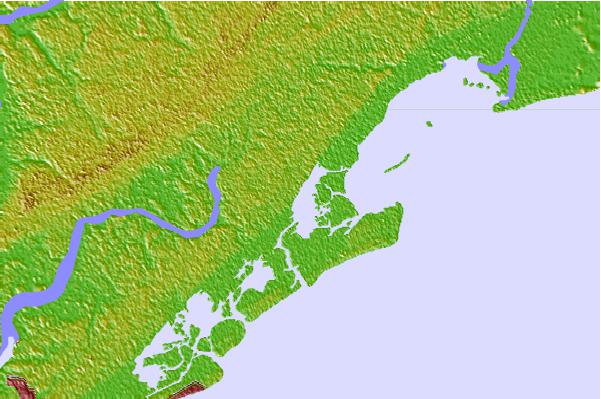 Use this relief map to navigate to tide stations, surf breaks and cities that are in the area of Moores Landing, ICWW, Sewee Bay, South Carolina.