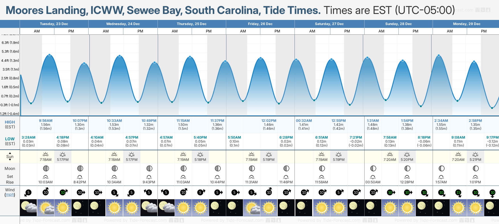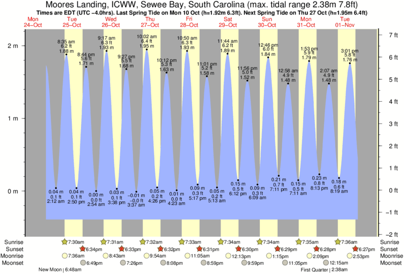 NOTE: Use of this site for Moores Landing, ICWW, Sewee Bay, South Carolina tide times is subject to our terms.