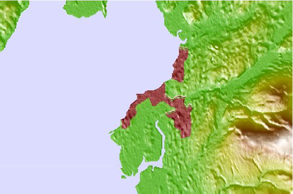 Use this relief map to navigate to tide stations, surf breaks and cities that are in the area of Morecambe.