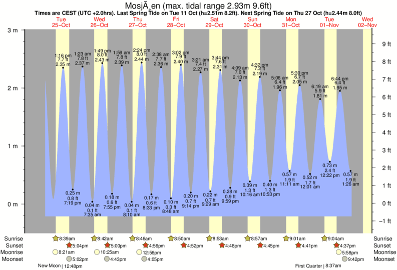 Tide chart for MosjøenShowing low and high tide times for the next 30 days at Mosjøen. Tide Times are CET (UTC +1.0hrs).