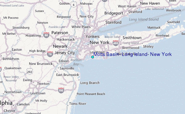Use this relief map to navigate to tide stations, surf breaks and cities that are in the area of Motts Basin, Long Island, New York.