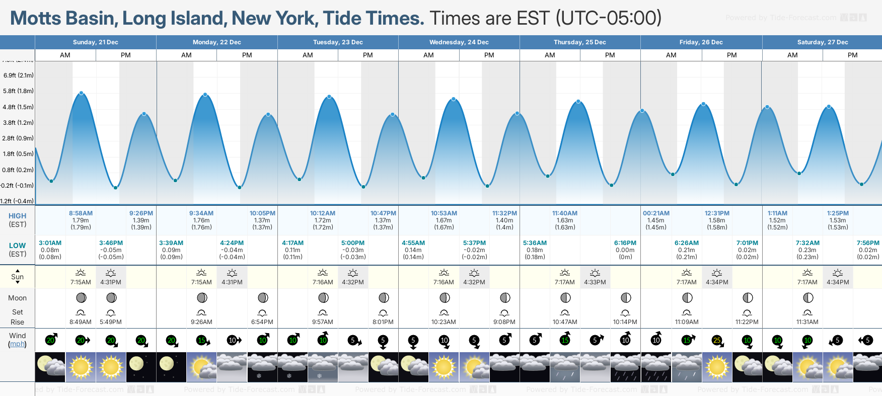 Tide Times for Motts Basin, Long Island (tomorrow): Sunday 21 December 2025