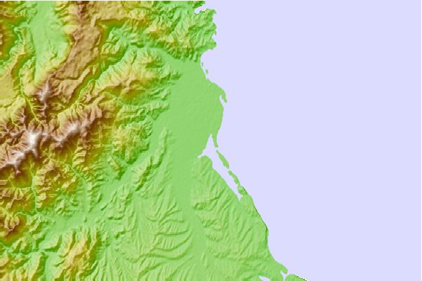 Use this relief map to navigate to tide stations, surf breaks and cities that are in the area of Motueka, New Zealand.