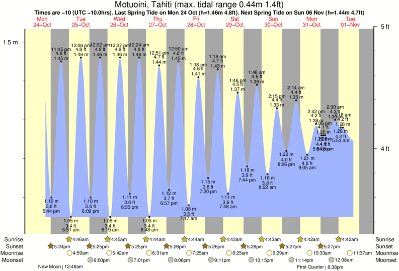 Tide Times are -10 (UTC -10.0hrs). Last Spring High Tide at Motuoini was on Thu 04 Dec (height: 1.44m 4.7ft). Next high Spring Tide at Motuoini will be on Sun 21 Dec (height: 1.41m 4.6ft).
