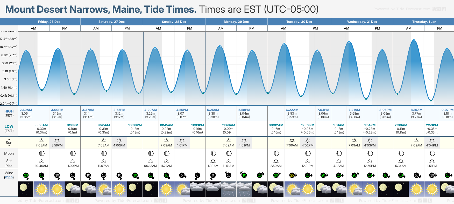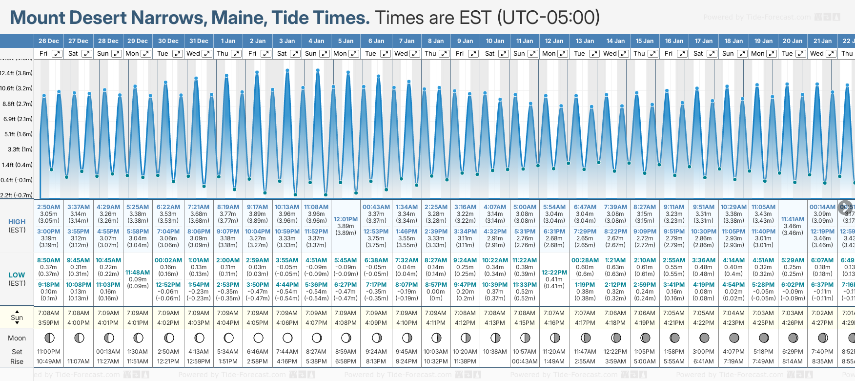 Tide Times for Mount Desert Narrows (tomorrow): Friday 26 December 2025