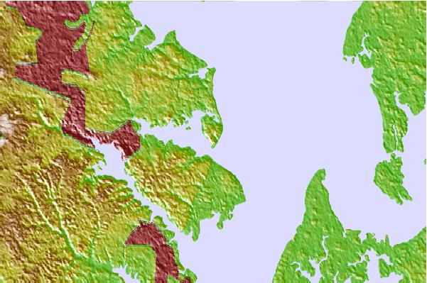 Use this relief map to navigate to tide stations, surf breaks and cities that are in the area of Mountain Point, Magothy River, Maryland.