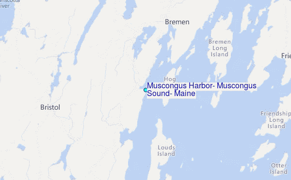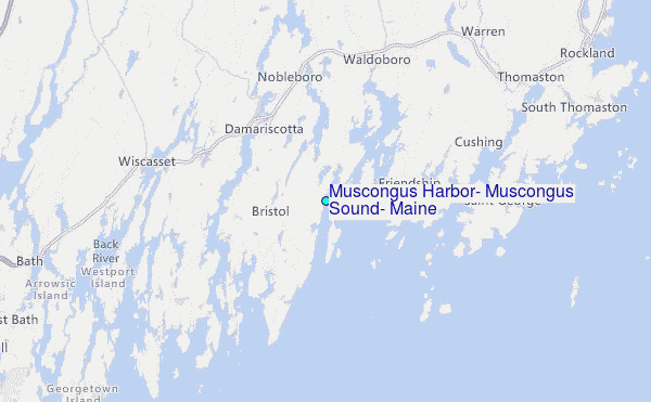 Use this relief map to navigate to tide stations, surf breaks and cities that are in the area of Muscongus Harbor, Muscongus Sound, Maine.