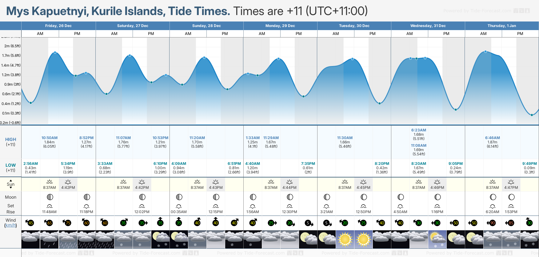 Tide Times for Mys Kapuetnyi: Thursday 01 January 2026