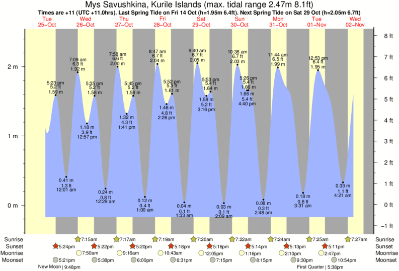NOTE: Use of this site for Mys Savushkina, Kurile Islands tide times is subject to our terms.