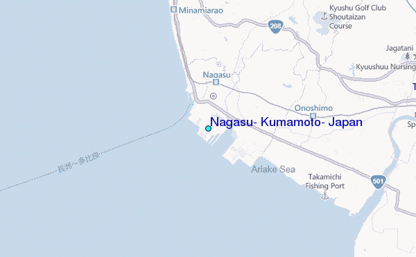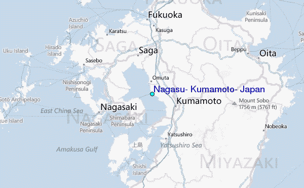 Use this relief map to navigate to tide stations, surf breaks and cities that are in the area of Nagasu, Kumamoto, Japan.