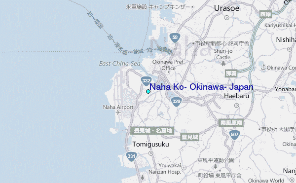Use this relief map to navigate to tide stations, surf breaks and cities that are in the area of Naha Ko, Okinawa, Japan.