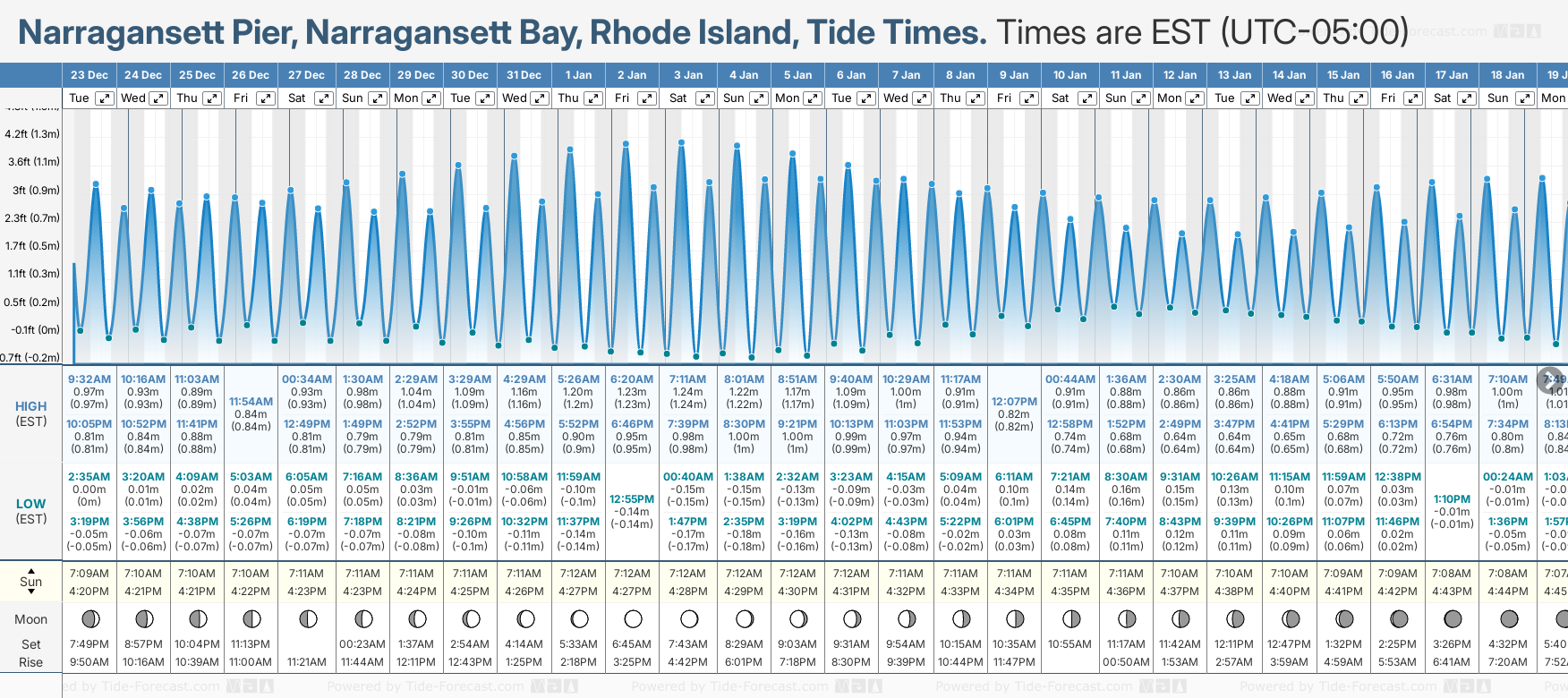 Narragansett Pier, Narragansett Bay tide times for December and January