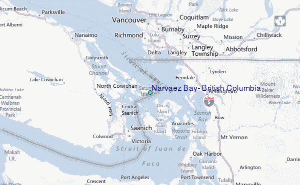 Use this relief map to navigate to tide stations, surf breaks and cities that are in the area of Narvaez Bay, British Columbia.