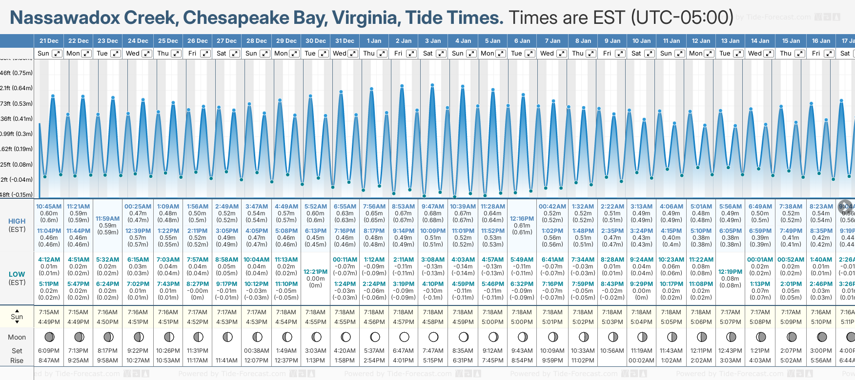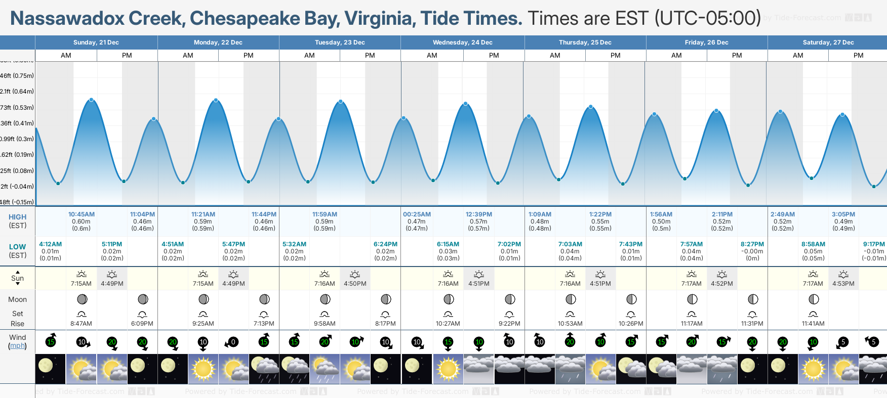 Tide Times for Nassawadox Creek, Chesapeake Bay (tomorrow): Sunday 21 December 2025