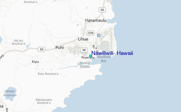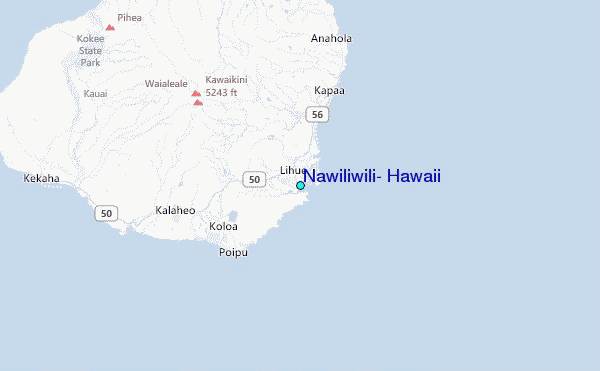 Use this relief map to navigate to tide stations, surf breaks and cities that are in the area of Nawiliwili, Hawaii.