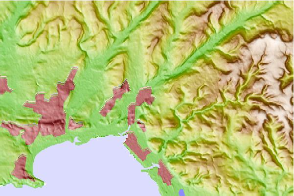 Use this relief map to navigate to tide stations, surf breaks and cities that are in the area of Neath.